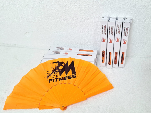 - Abanico de varillas de plástico y tela en poliéster.