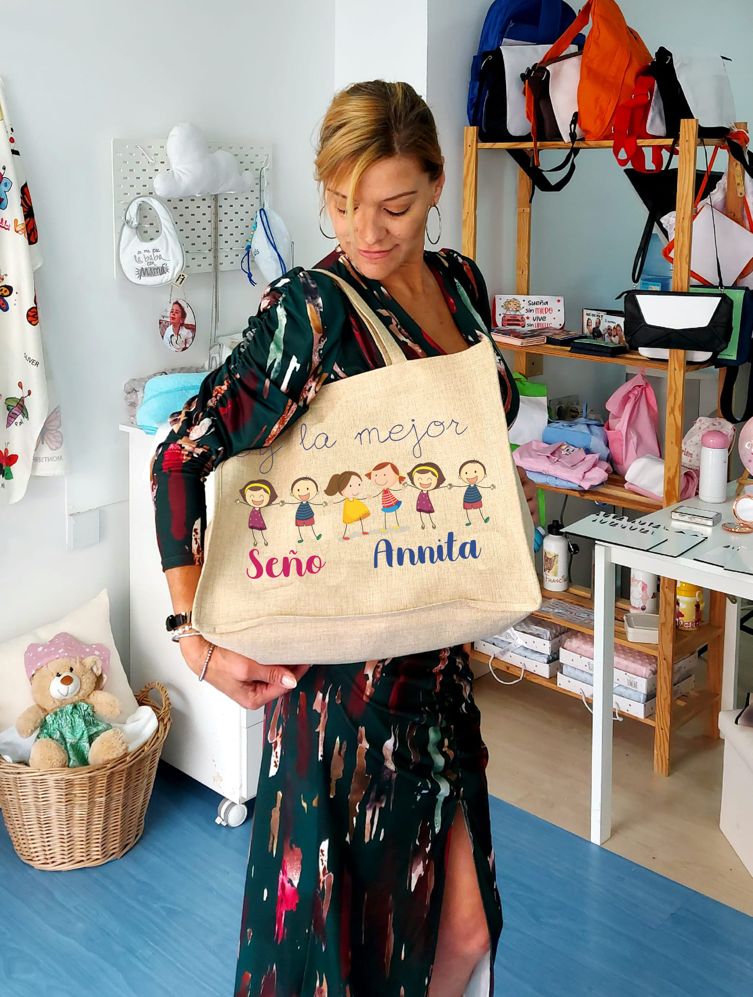 Tote bag nature de lino y yute, perfecta para llevarla a la compra, a la playa, de picnic, etc.
