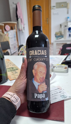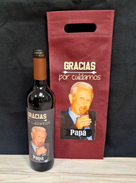 Botella de vino con etiqueta personalizada con el texto y foto que quieras. Un detalle original para cualquier ocasión.