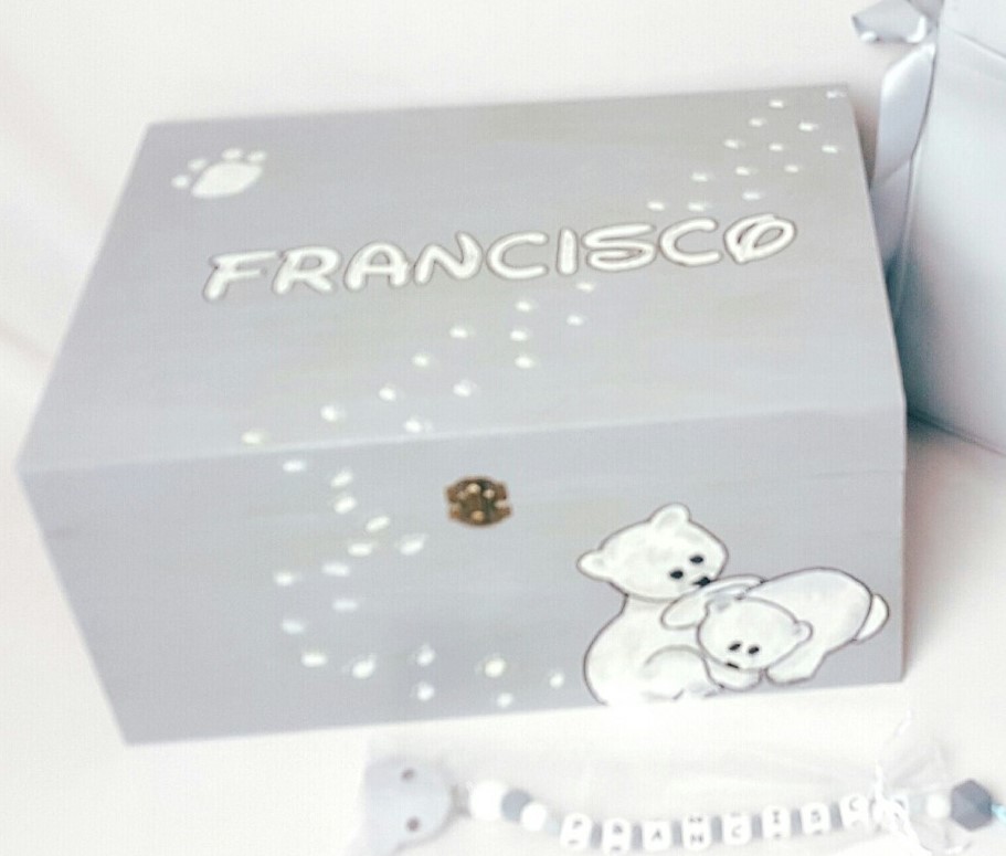 Caja de madera cuadrada con cierre metálico, Cofre con tapa.