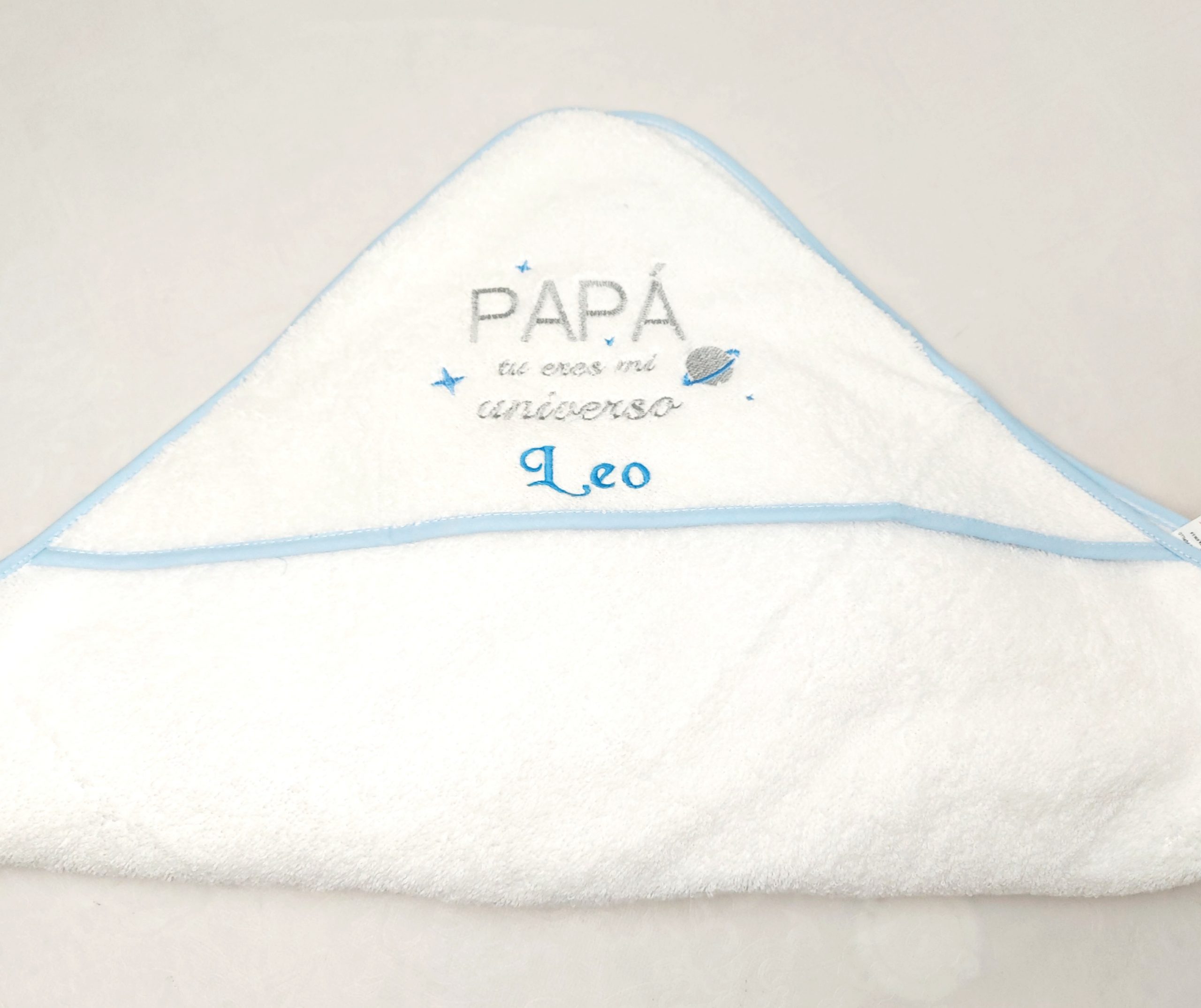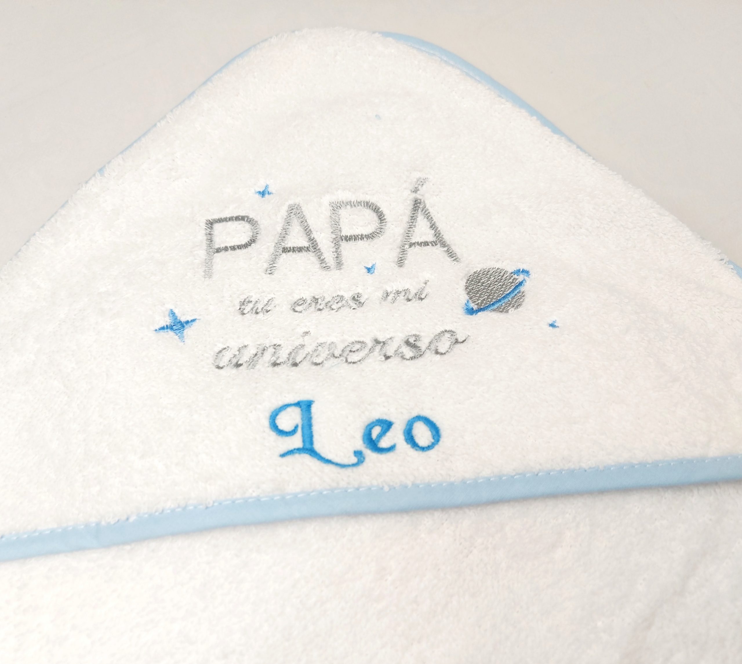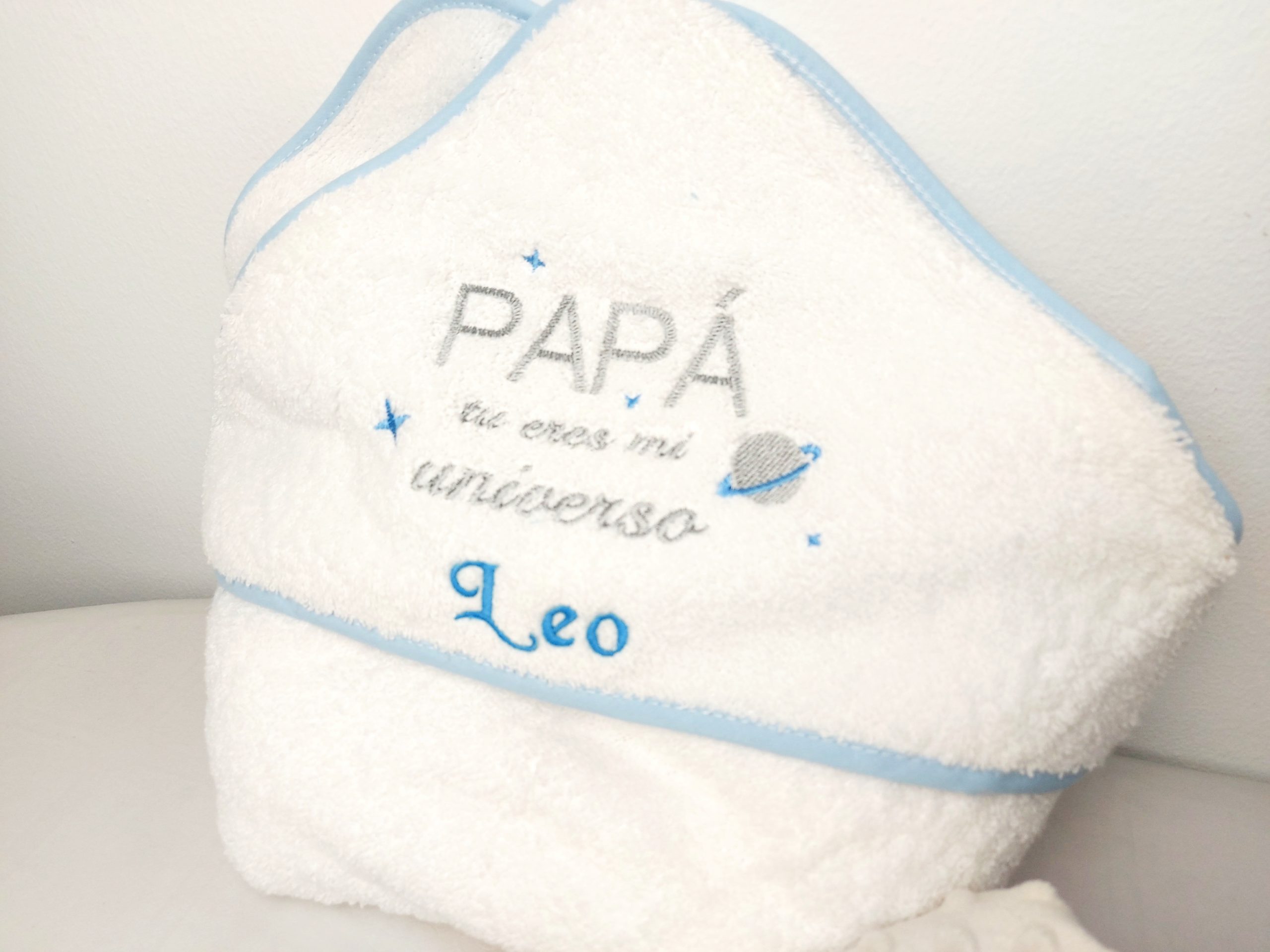 Capa de baño, toalla para bebé, con frase bordada y el nombre.