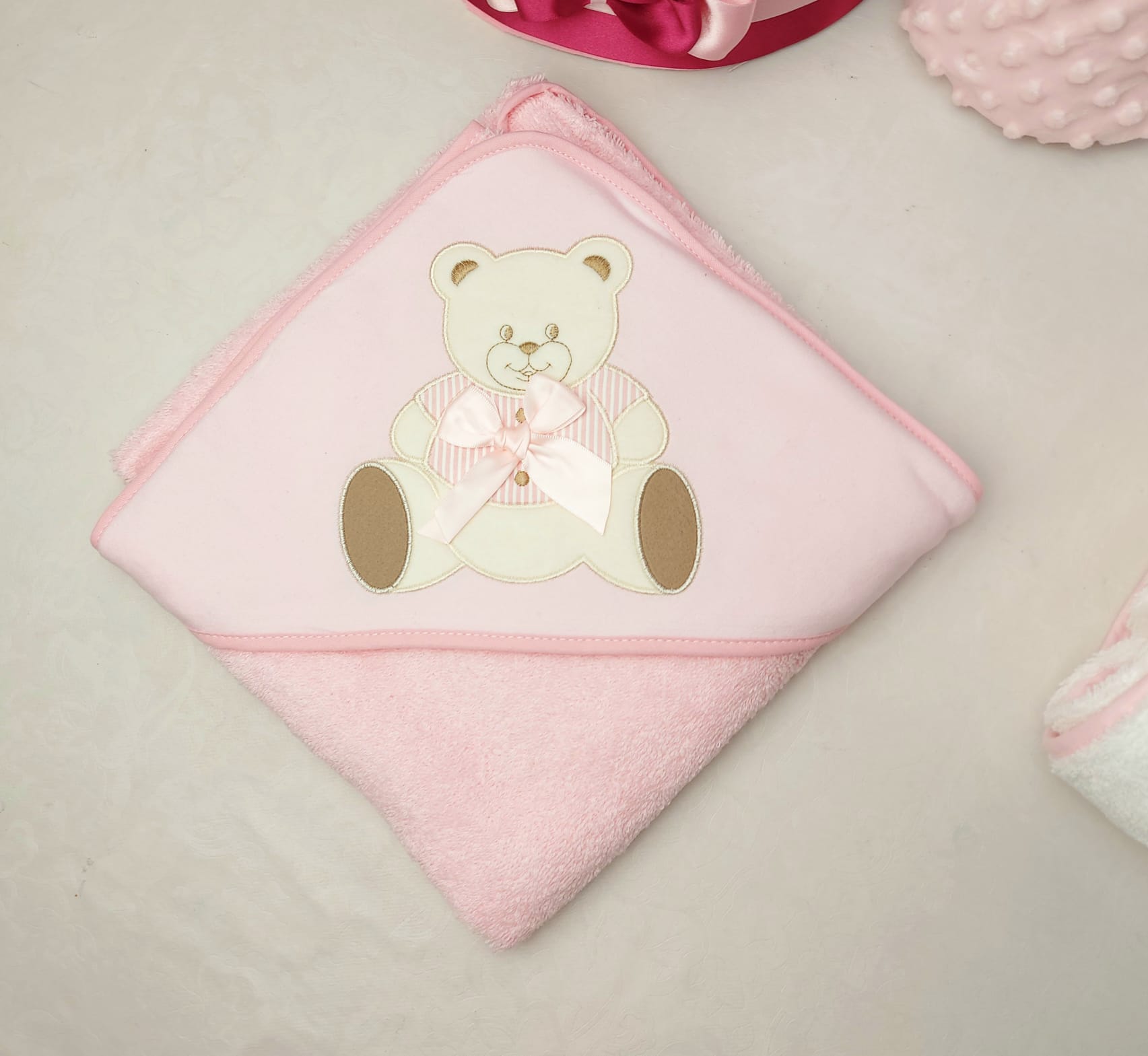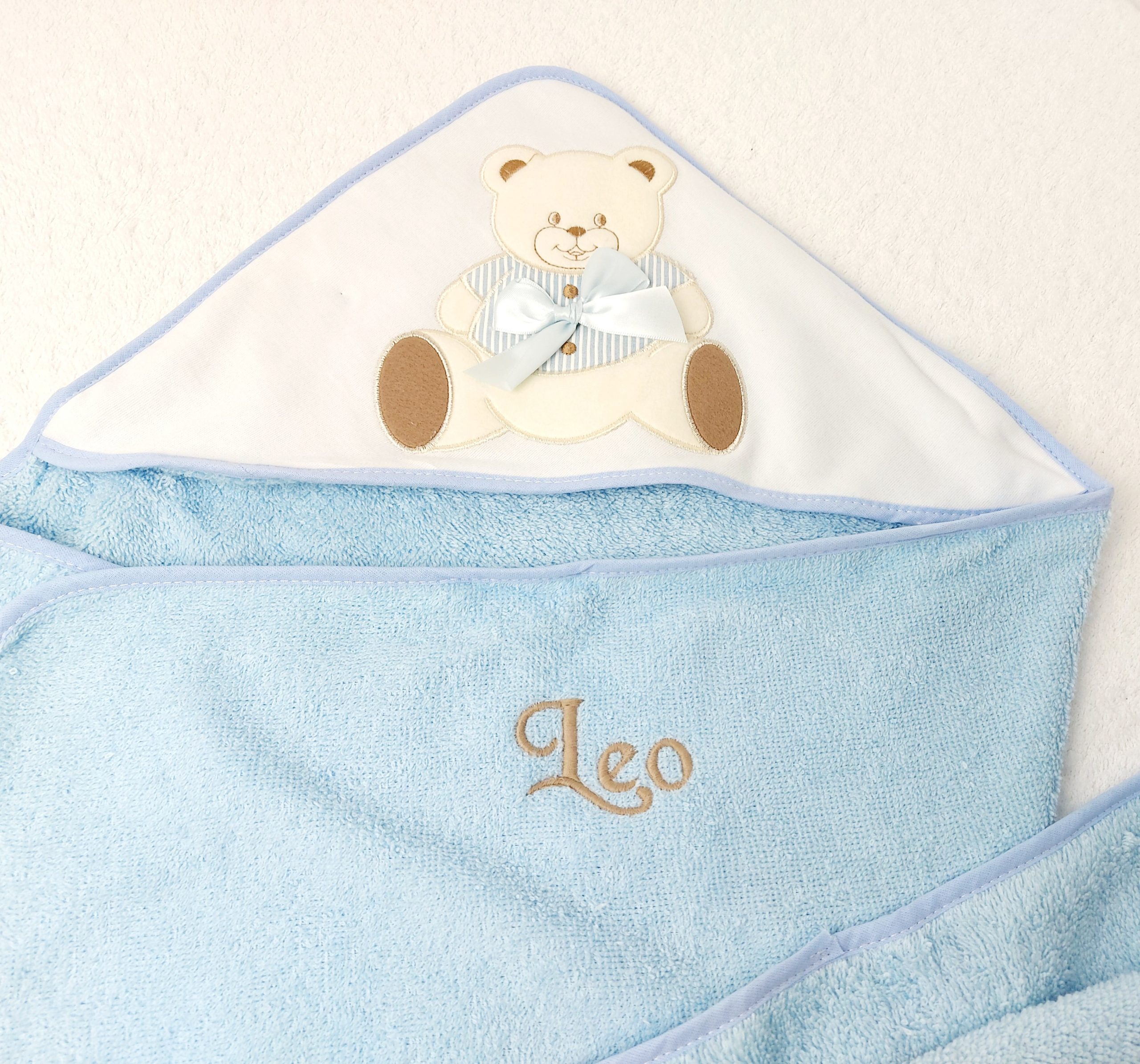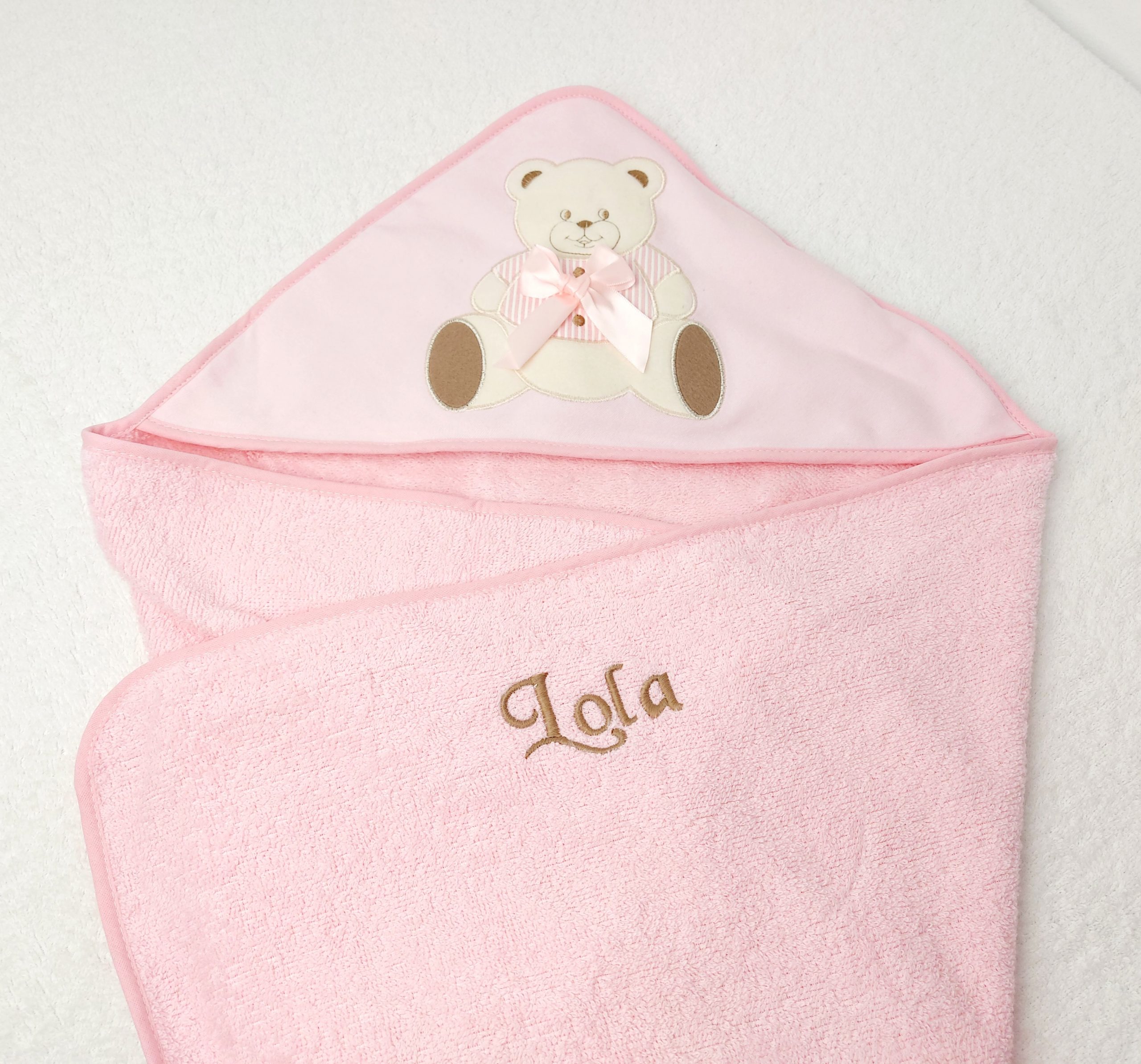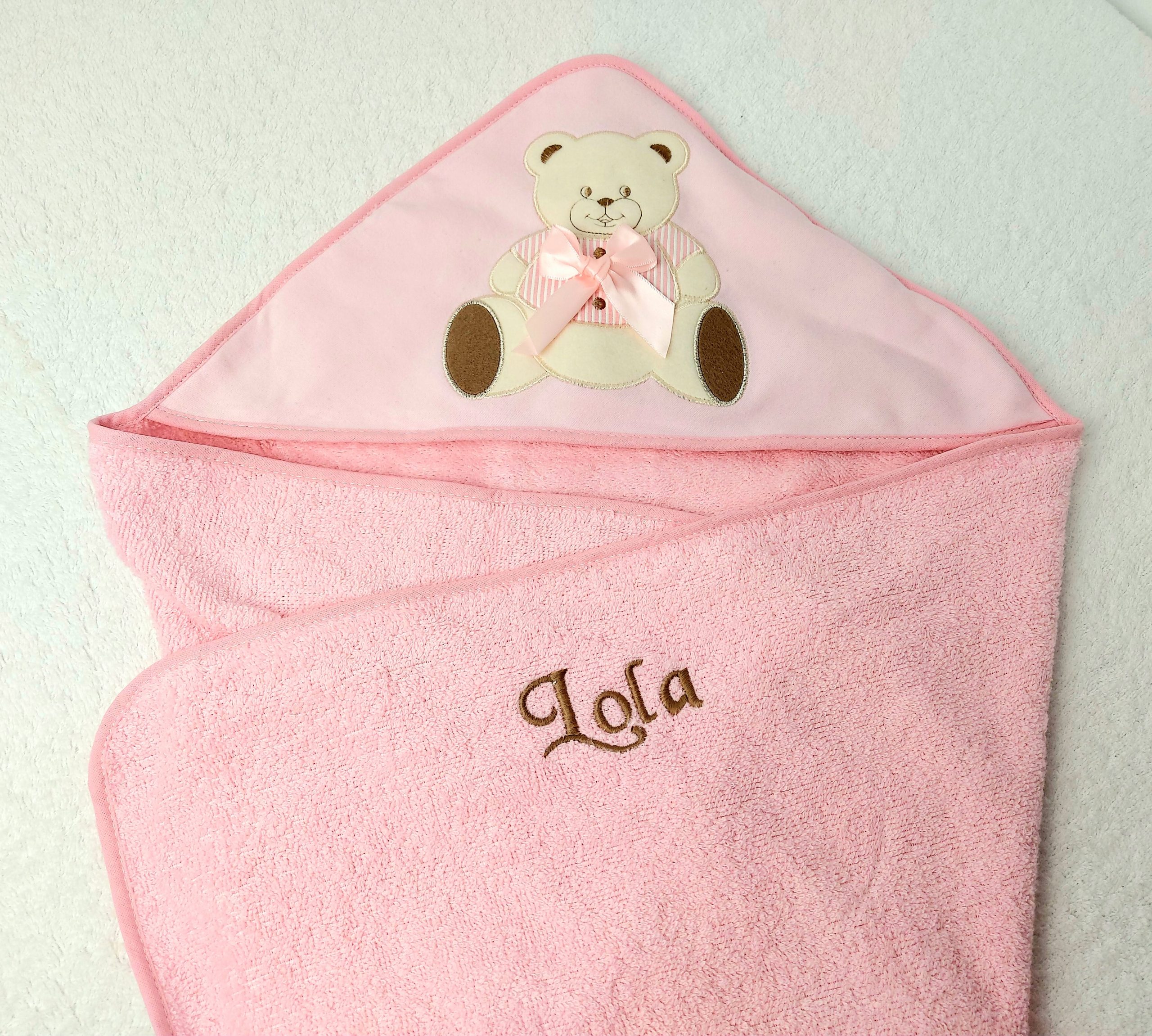 Capa de baño, toalla para bebé, con frase bordada y el nombre.