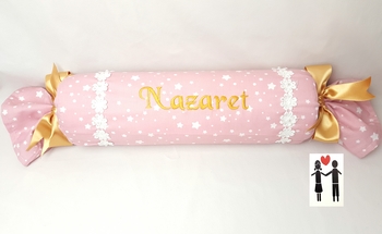 Cojín antivuelco o caramelo. Medida grande de 40 cm de largo por 19 cm de diámetro.