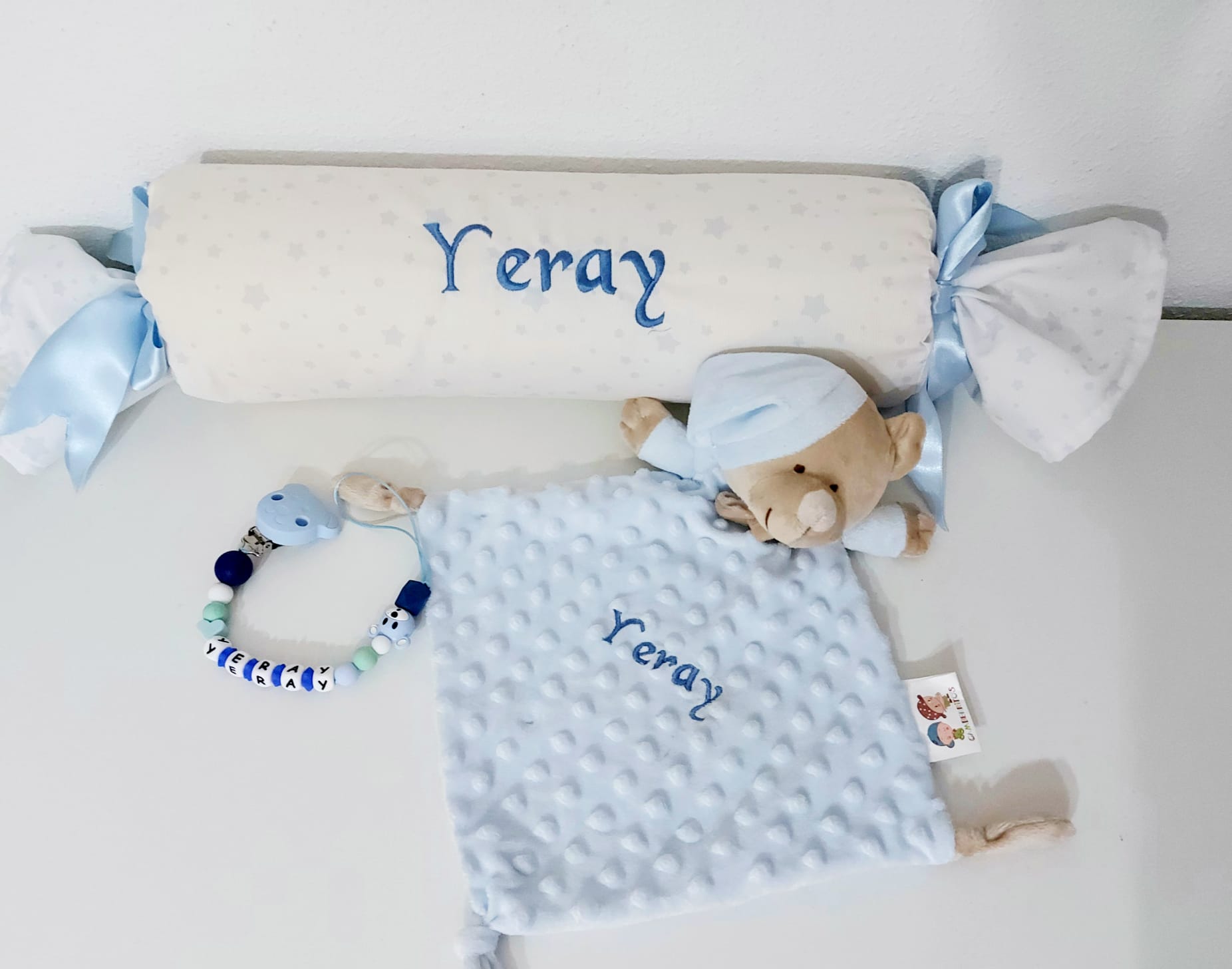 En texto añada el nombre a bordar y el color del bordado.