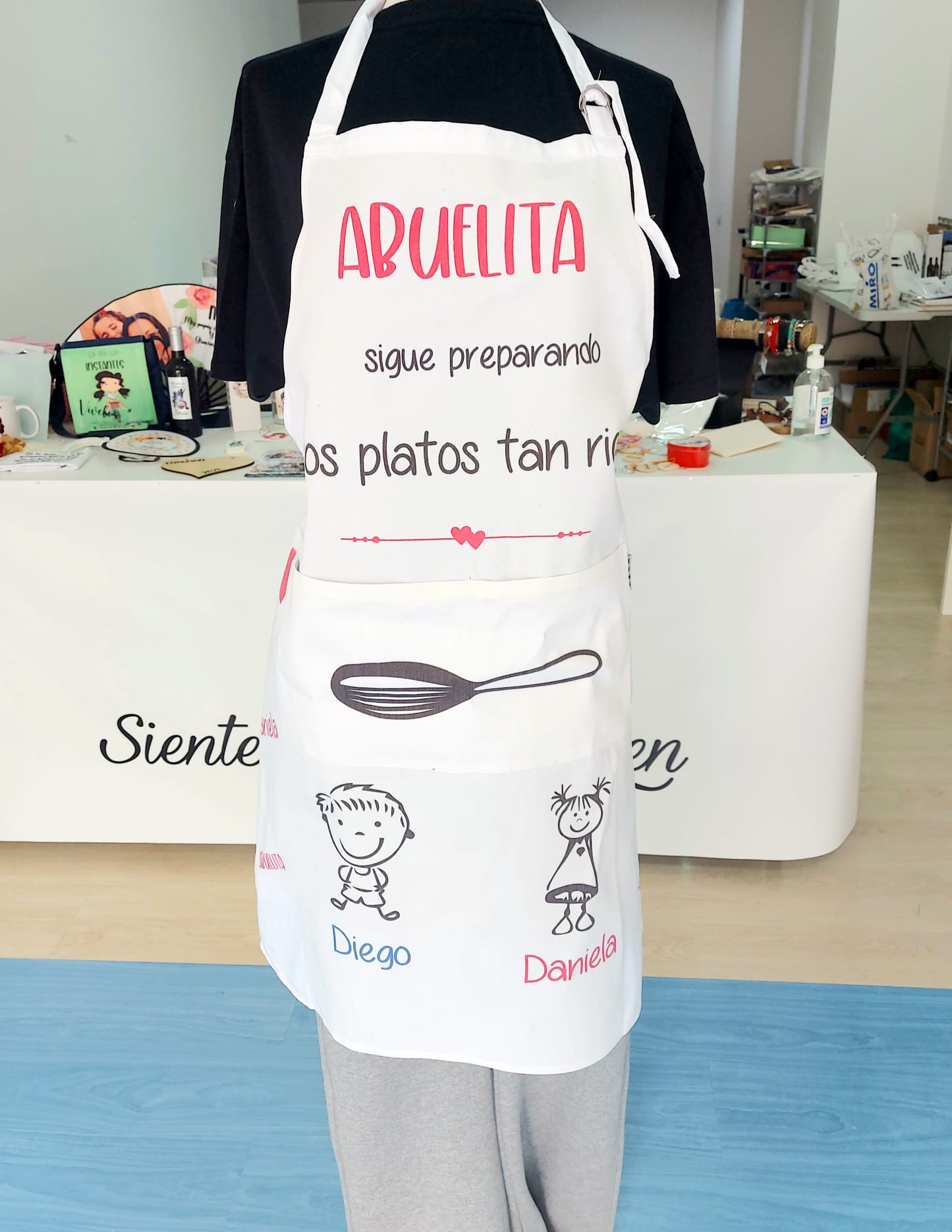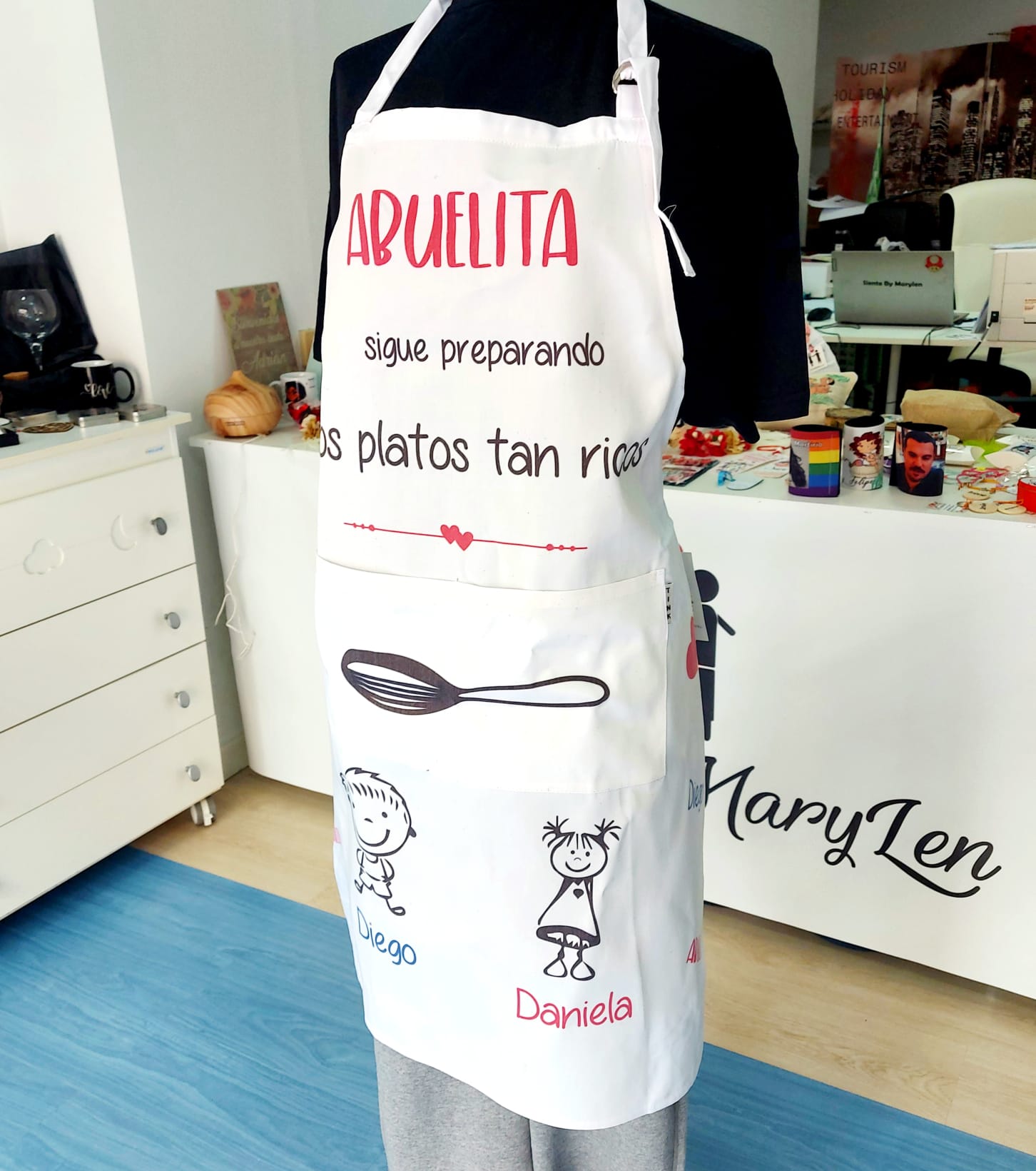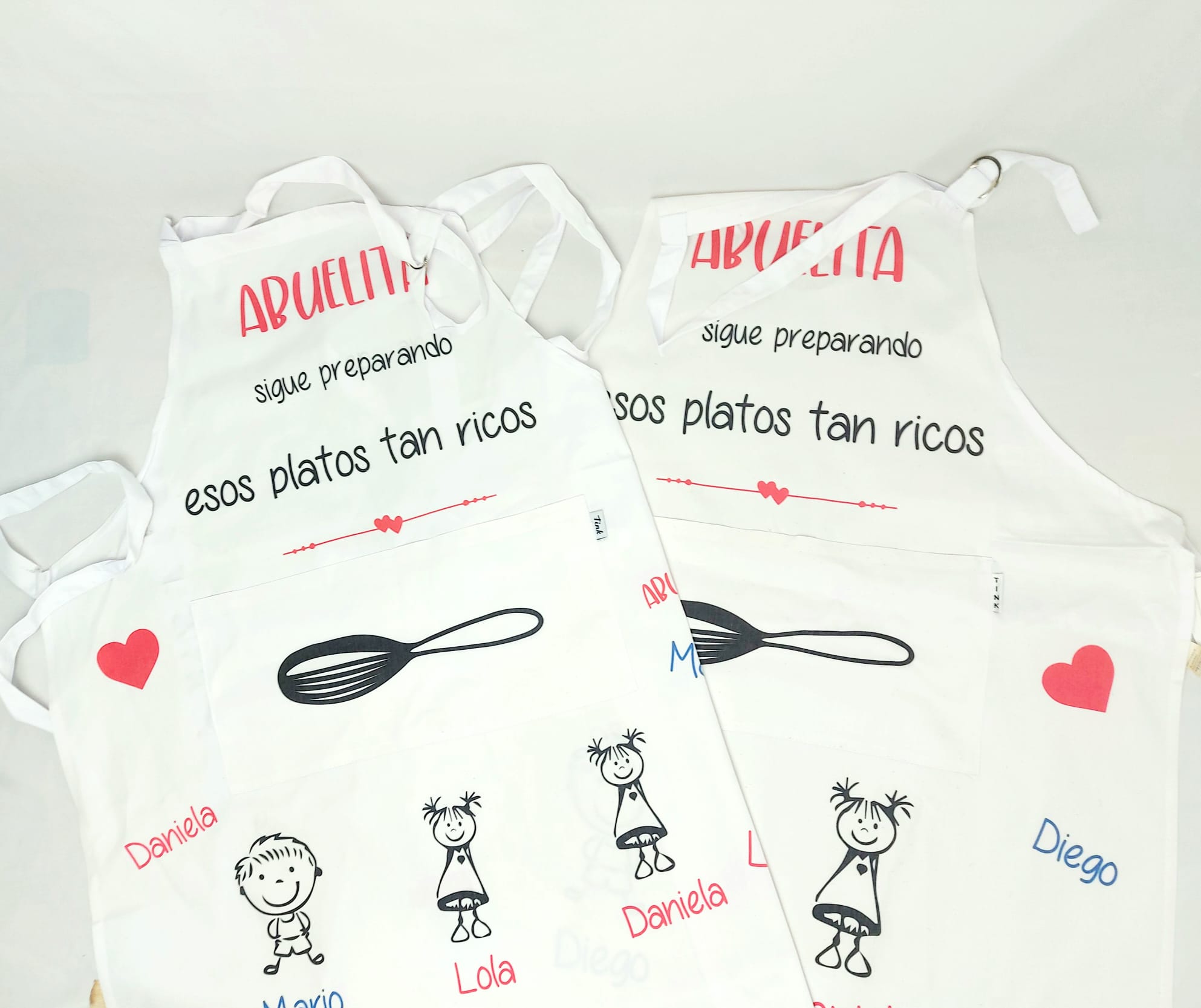 Delantal abuelita dibujos. Con el nombre de cada nieto, hijos, etc….