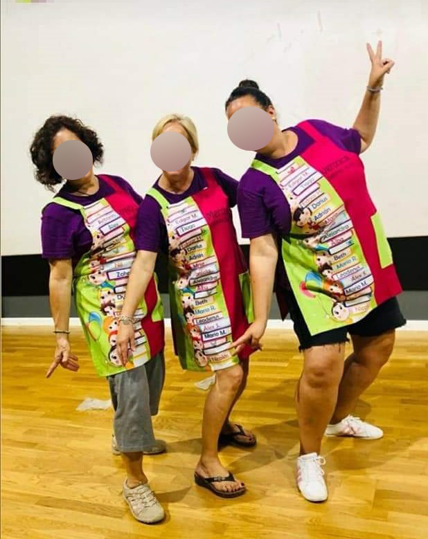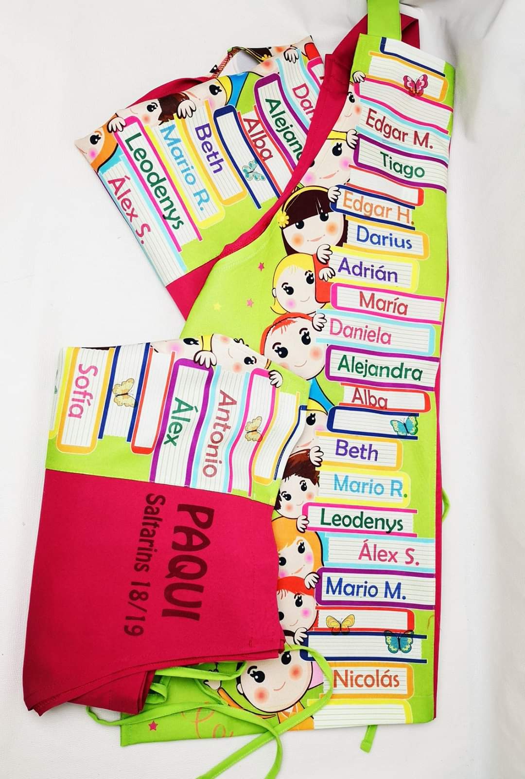 Con el nombe de los alumnos, frase que el quieras dedicar en el bolsillo y nombre de la seño, curso y demás.