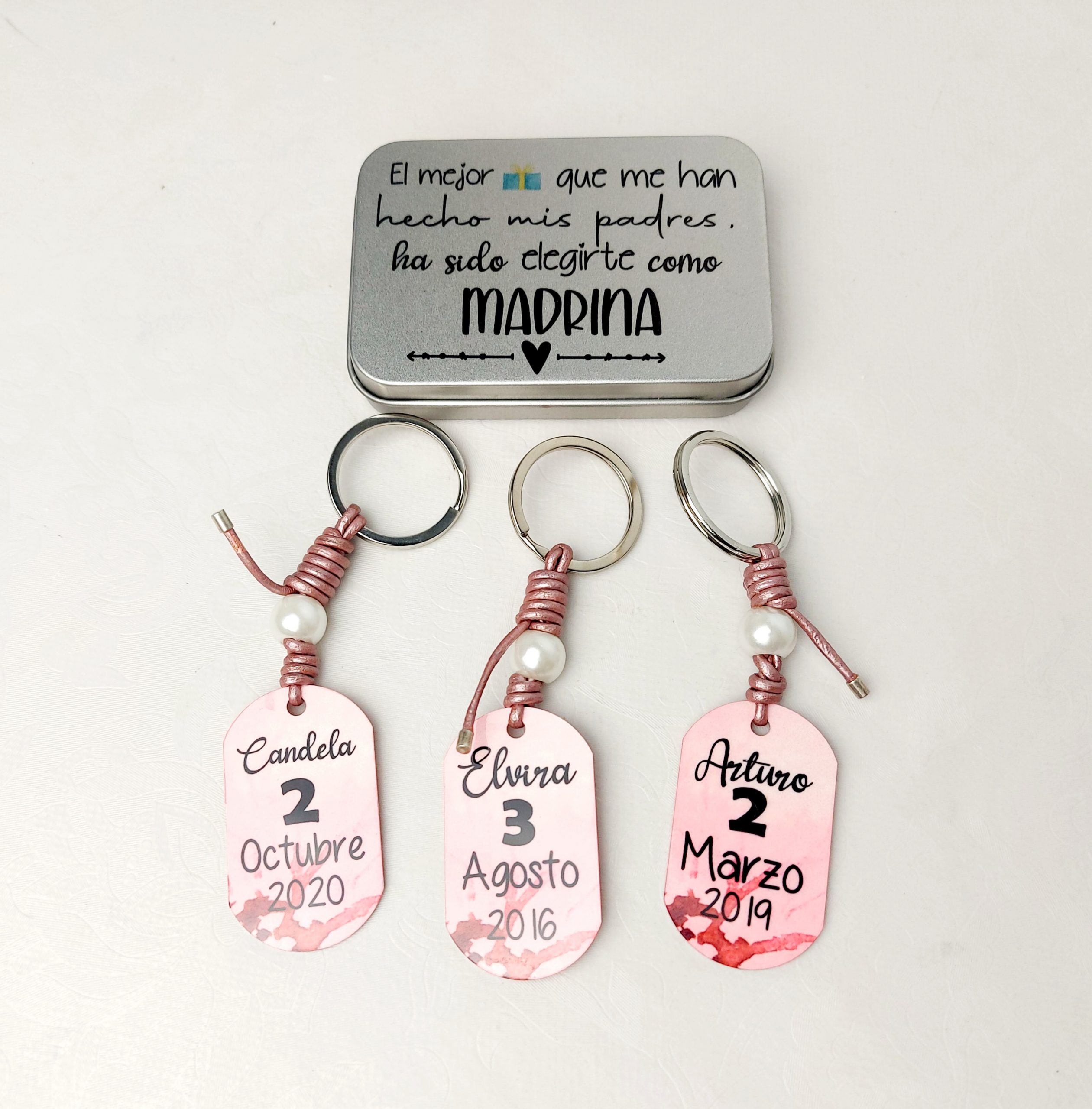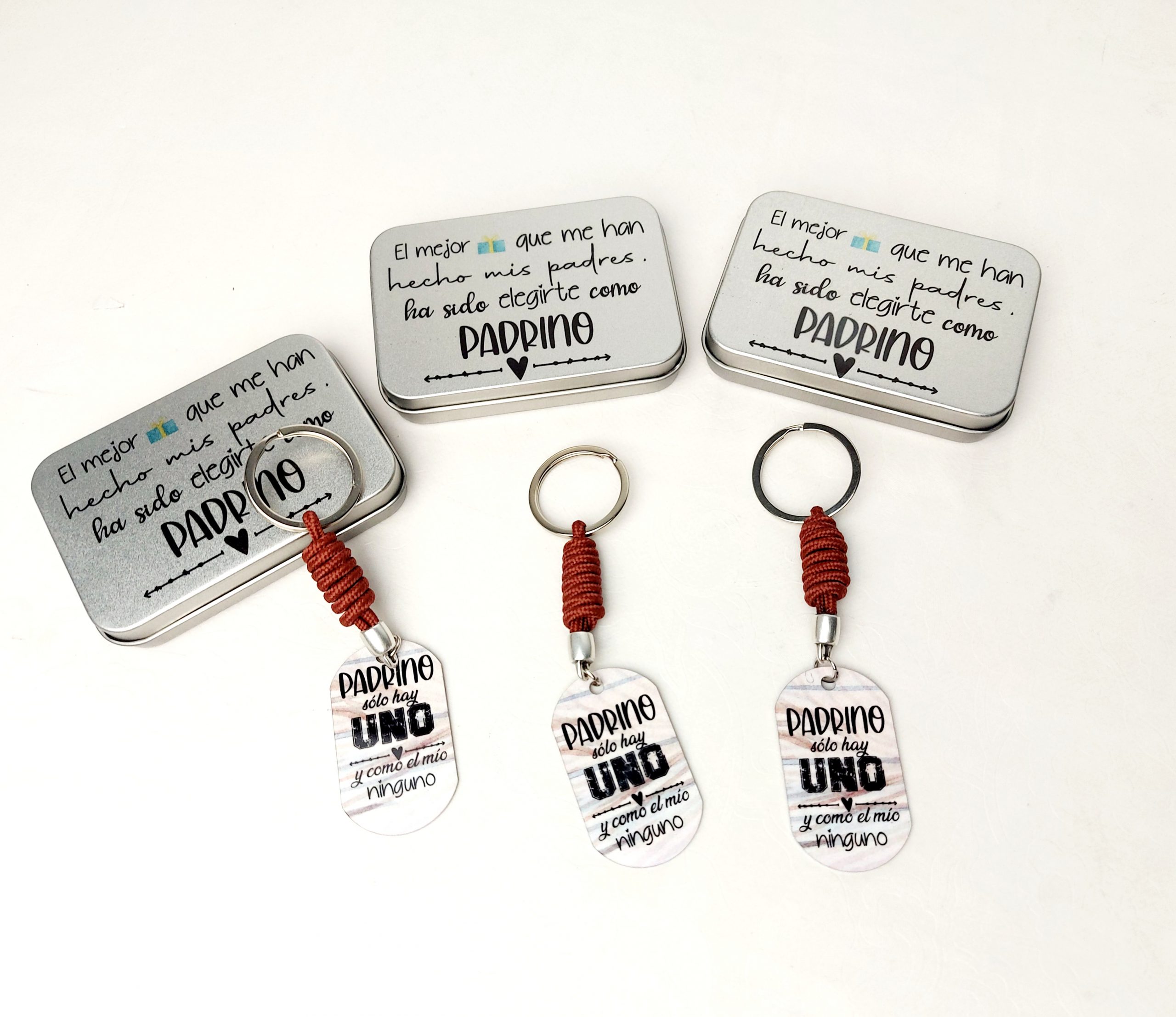 Llaveros de aluminio con cuero naciona de alta calidad. En cajita de metal preparado para regalar
