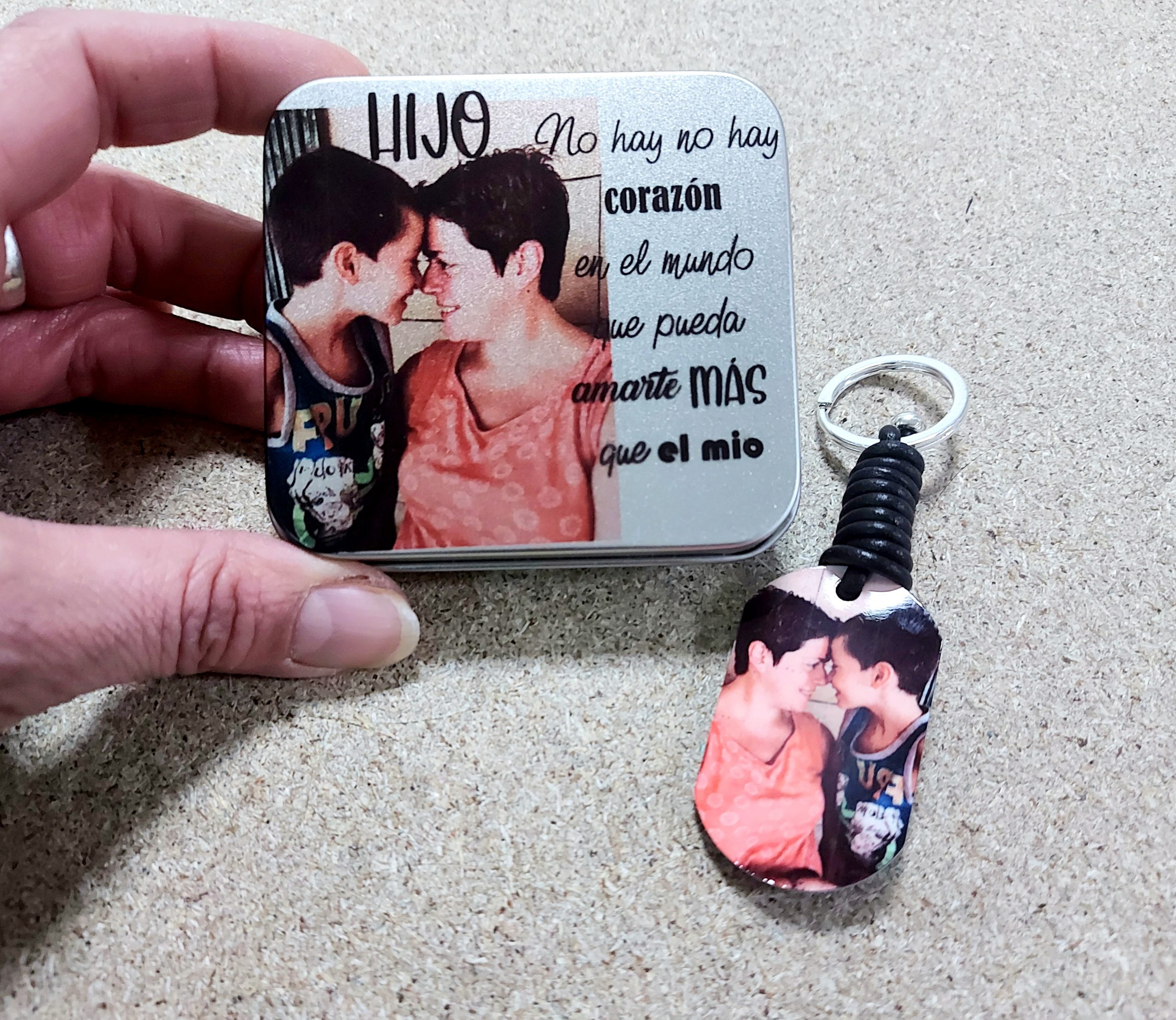Llaveros de aluminio con cuero naciona de alta calidad. En cajita de metal preparado para regalar.