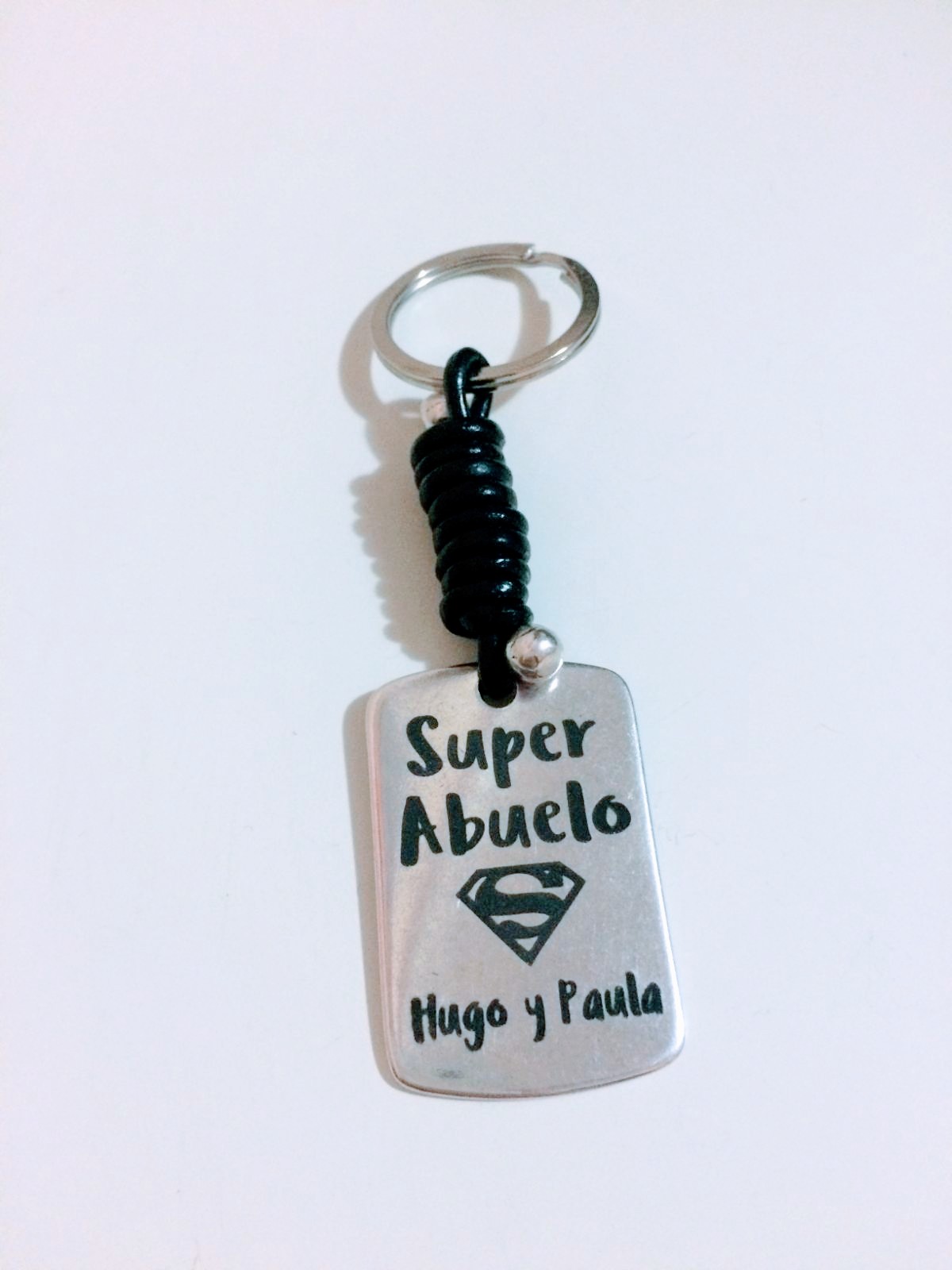 En texto dinos los nombres a grabar por la otra cara, texto o foto de la caja. y color del cuero.