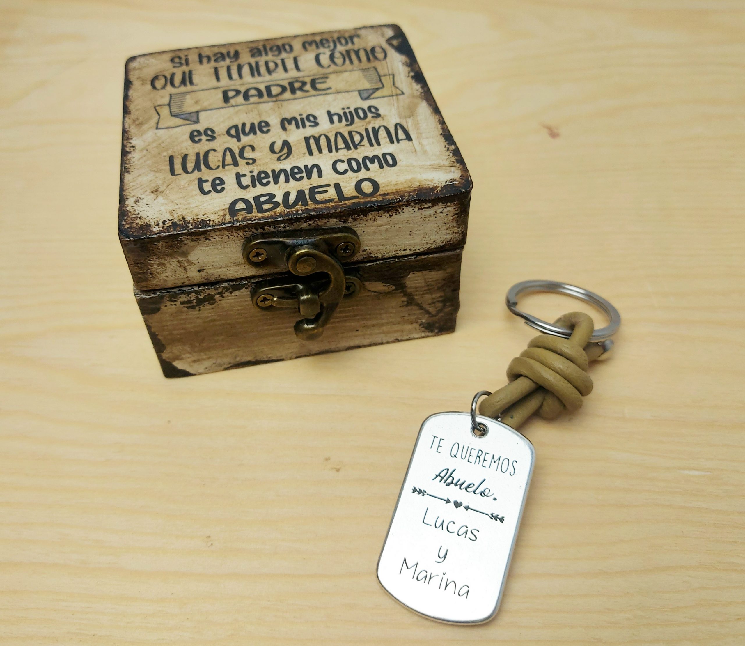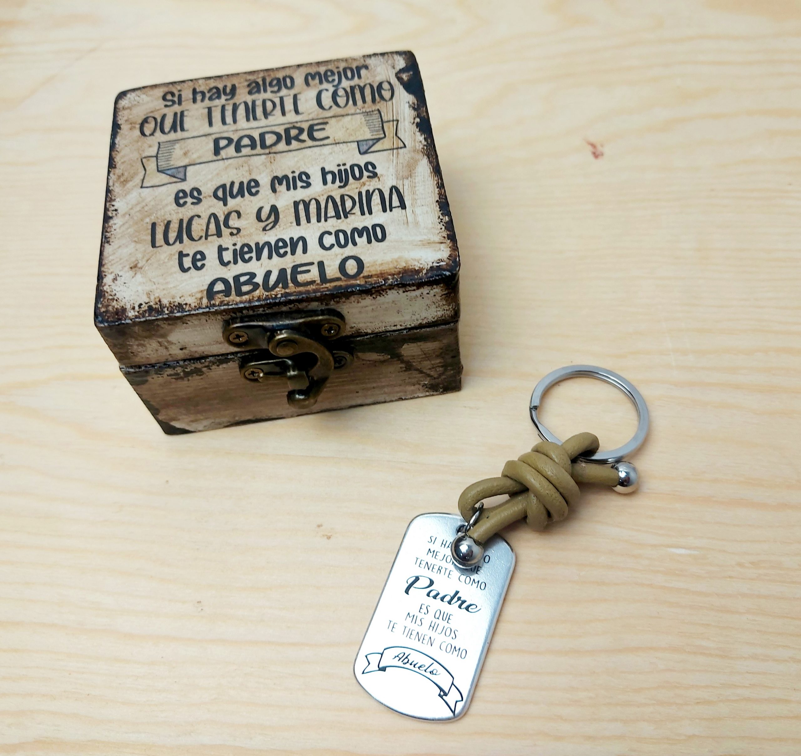 Escoge en caja de metal o de madera personalizada con el texto y foto que quieras.