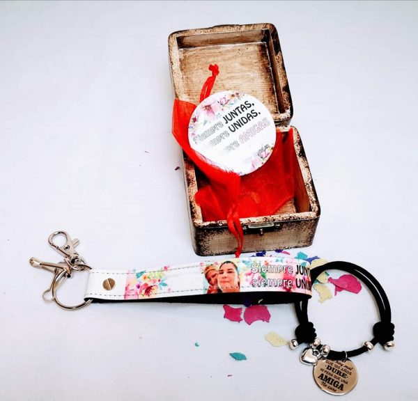 En texto añade el nombre y foto a poner en la caja y en el llavero.