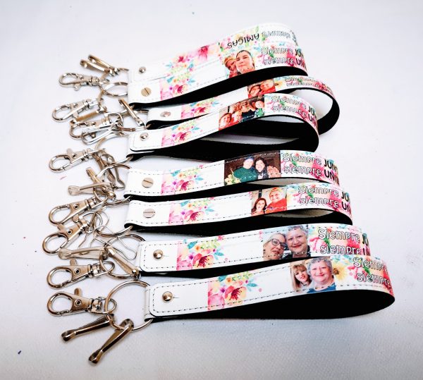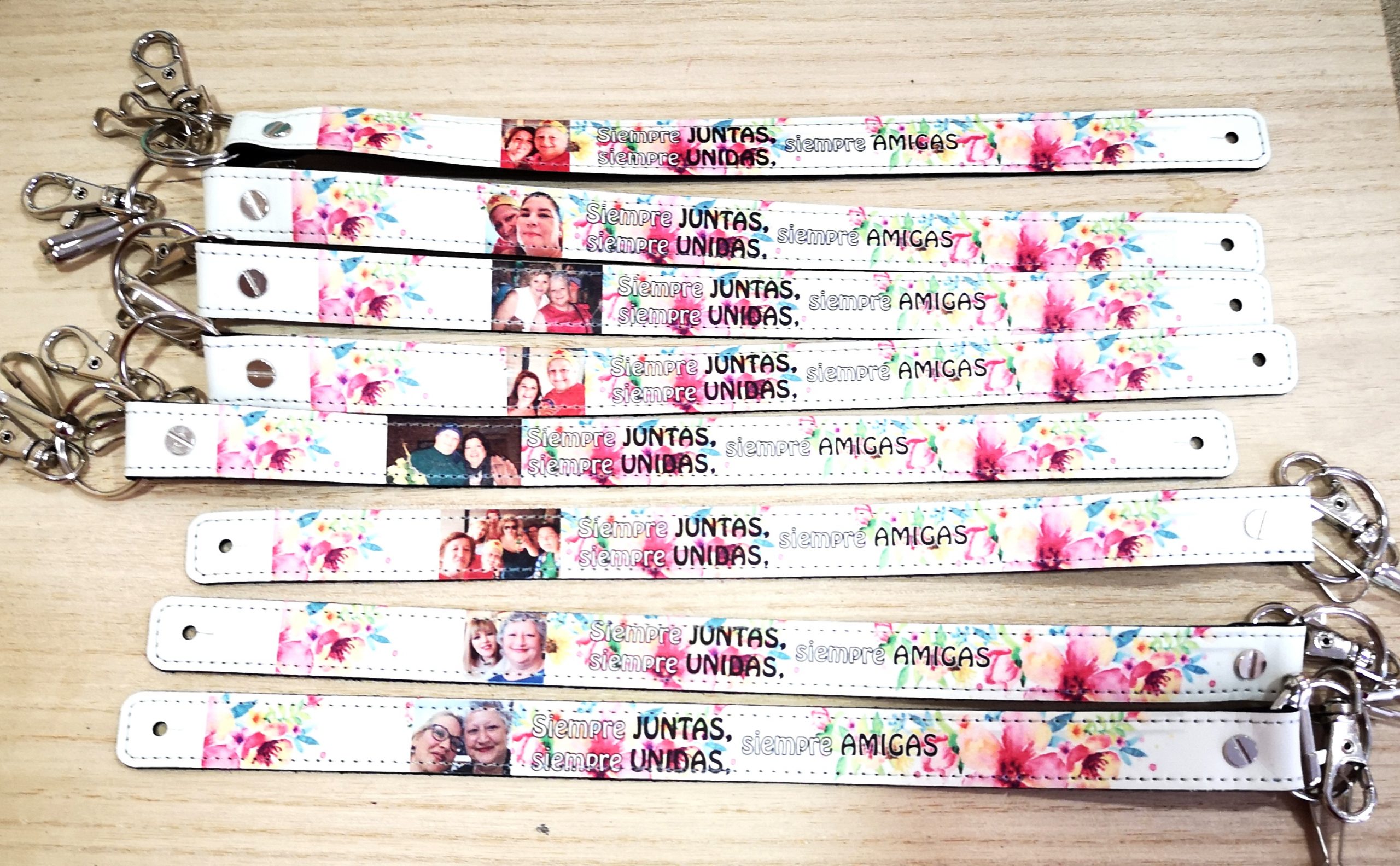 - Llavero de correa símil piel para tener las llaves siempre a mano. Personalizado con foto