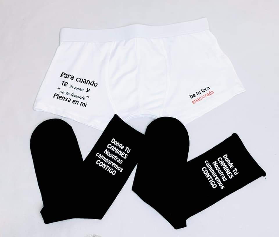 Conjunto de boxer y calcetines. Ideal para un detalle muy especial en cualquier fecha señalada, ya sea cumpleaños, enamorados, aniversario o regalos para novios.