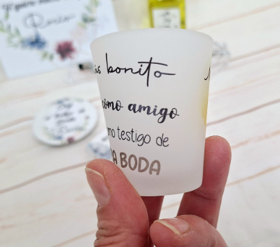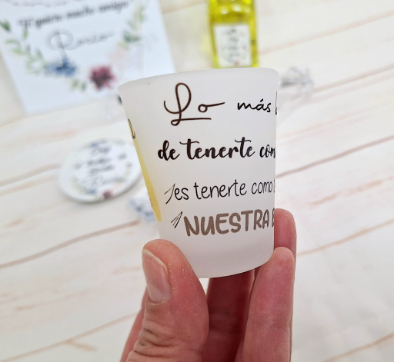 - Vaso de chupito personalizado (no es pegatina, se puede lavar sin perder el diseño)