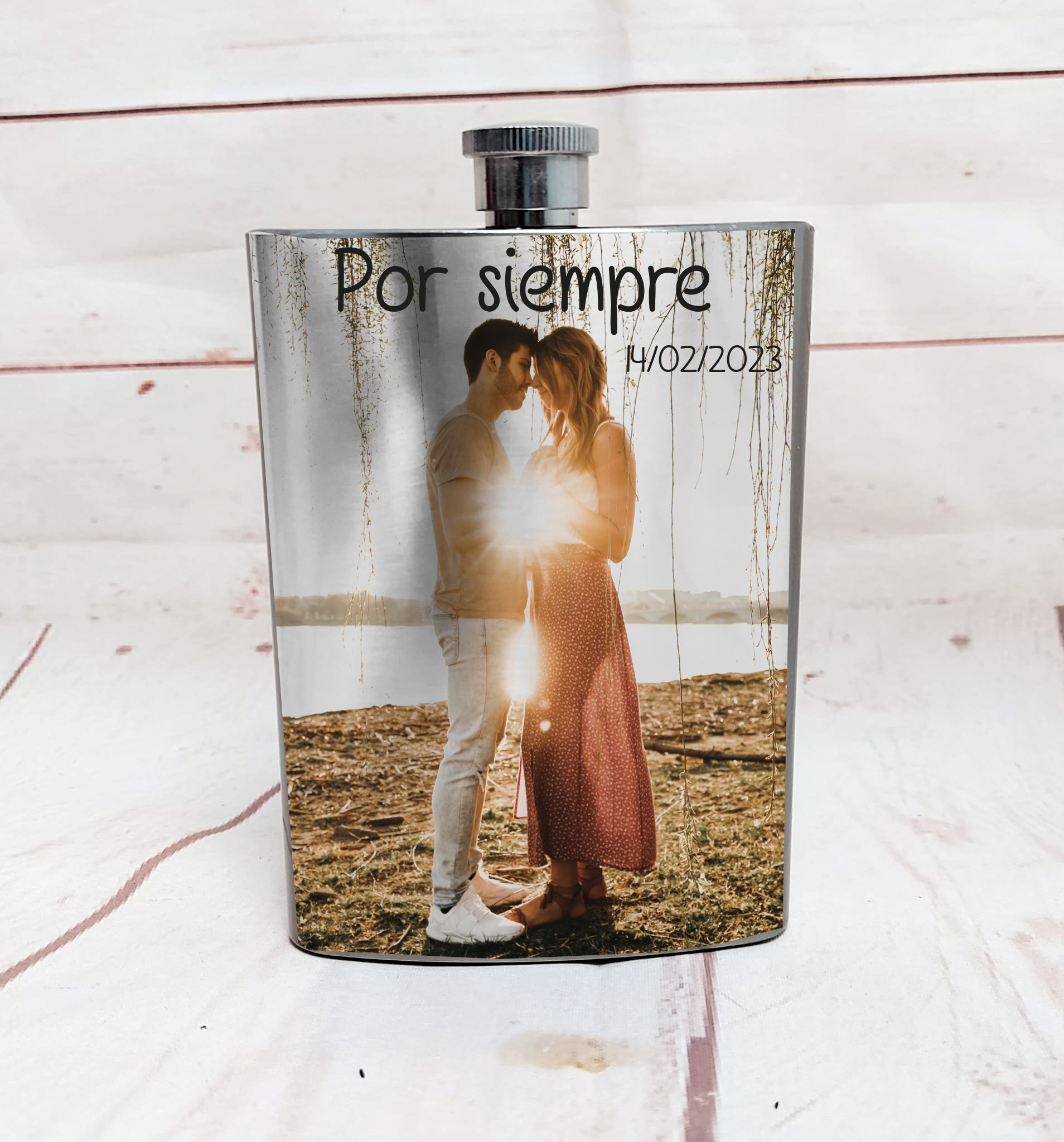 Práctico envase para bebidas destiladas o espirituosas. Ideal como regalo en días especiales, eventos y celebraciones como graduaciones, despedidas de soltero, bodas, Día del Padre…