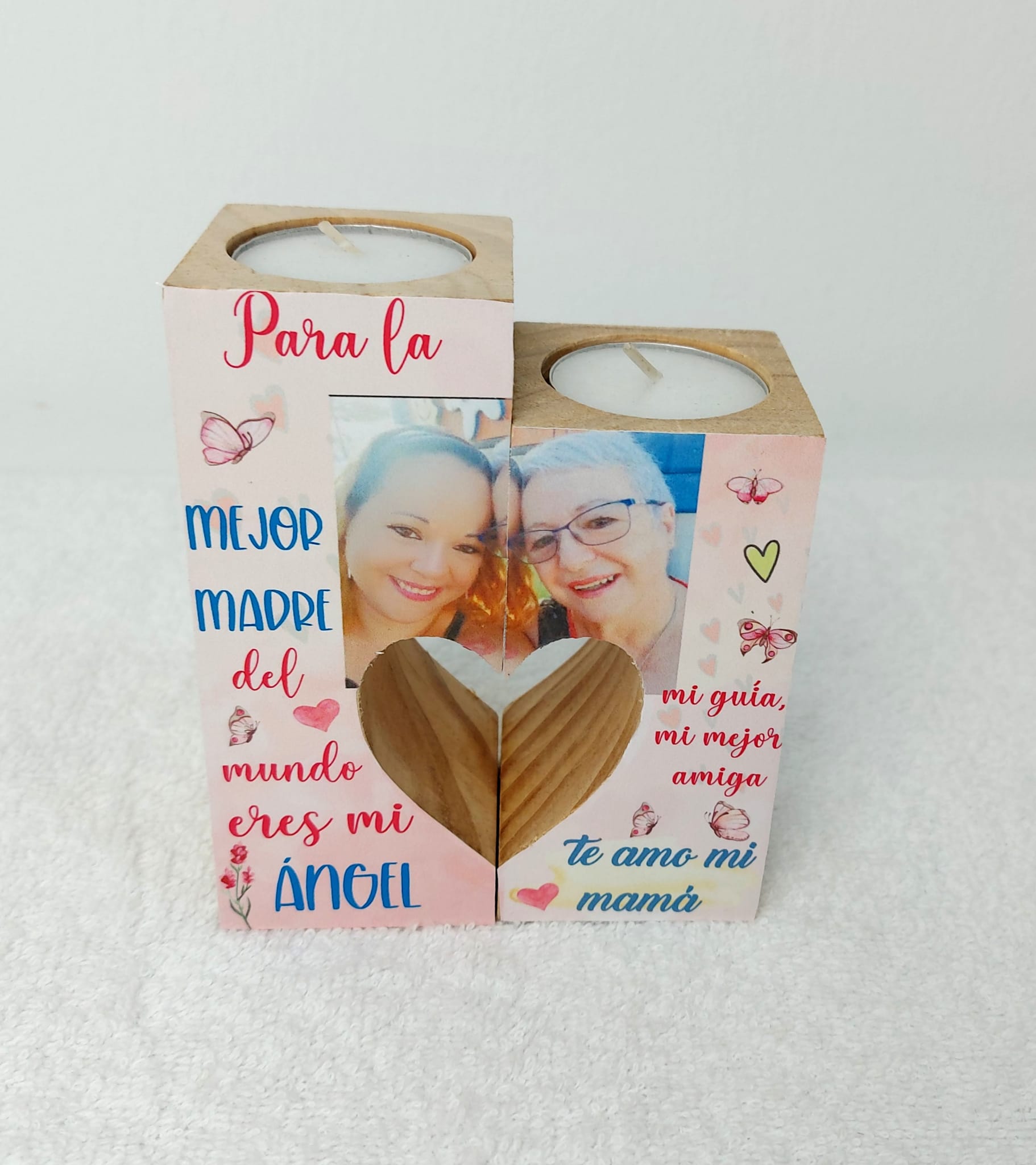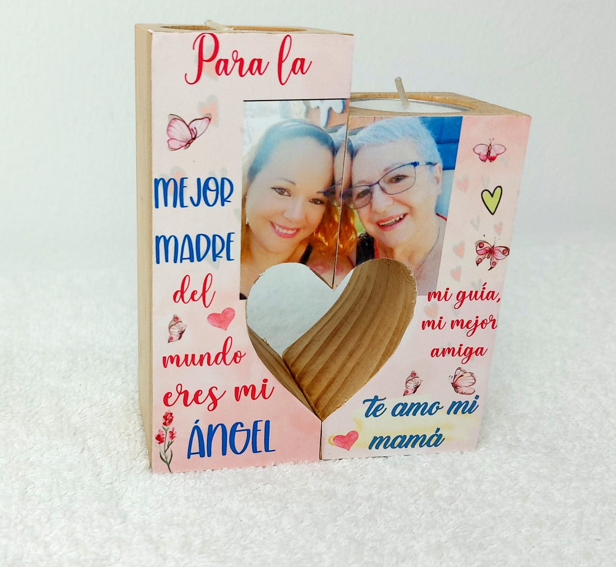 Porta velas de madera ideal para hacer un detalle original. Con el texto y foto que quieras.