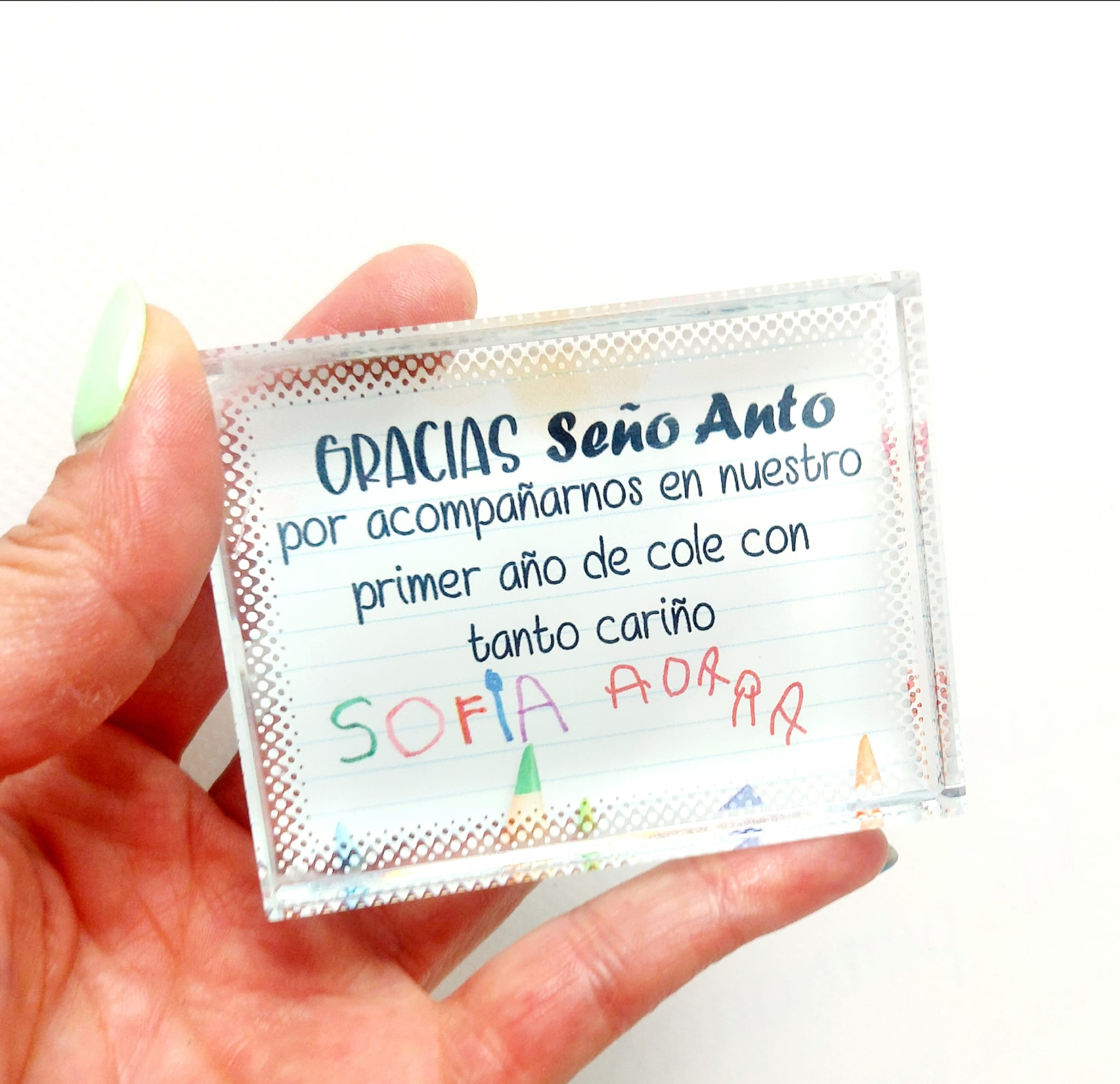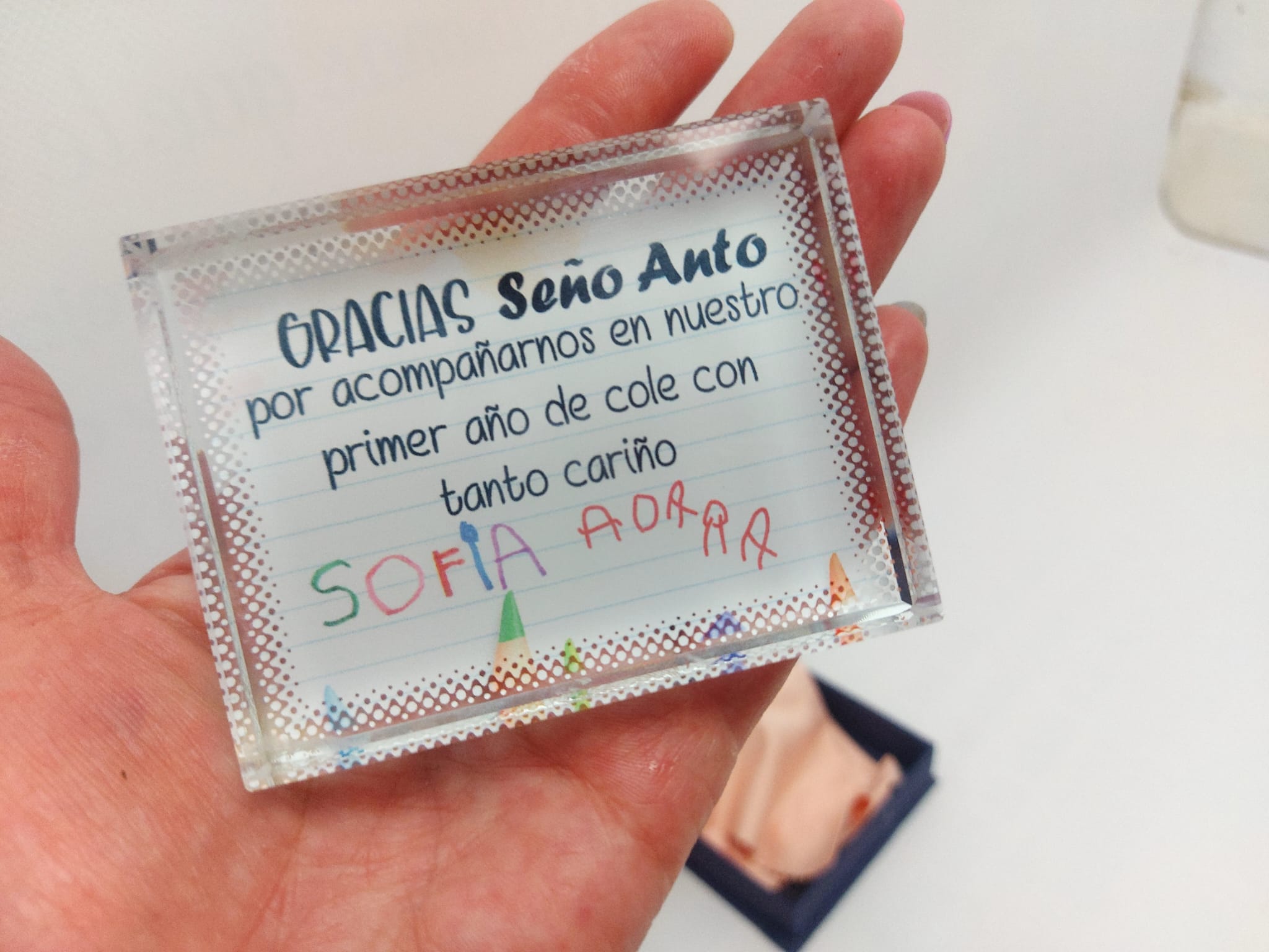Fotopaneles de cristal. Con el texto que quieras. En este caso lleva también el nombre de los alumnos escritos por ellos mismo.