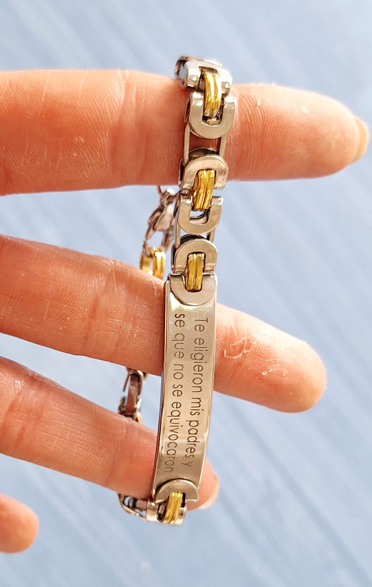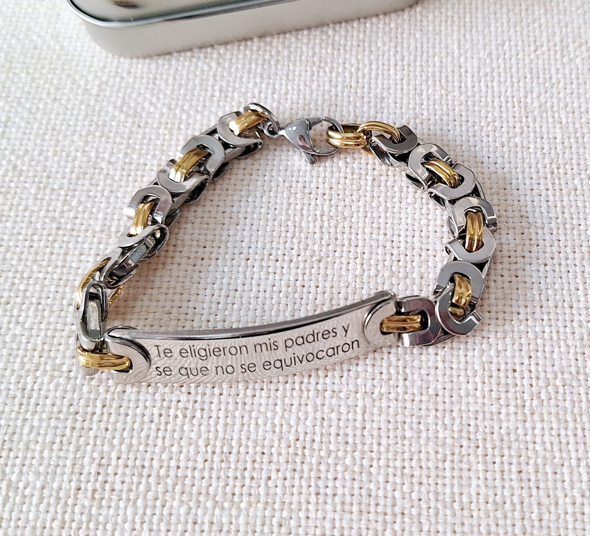 Pulsera esclava hombre acero inoxidable plateado con placa 46x10mm, cadena eslabones elegantes – 20 cm