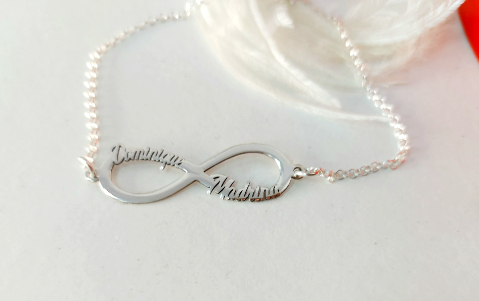 Pulsera de plata de ley personalizada con  2 nombres. 8 caracteres cada uno. POR ENCARGO DE 15 A 20 DÍAS.