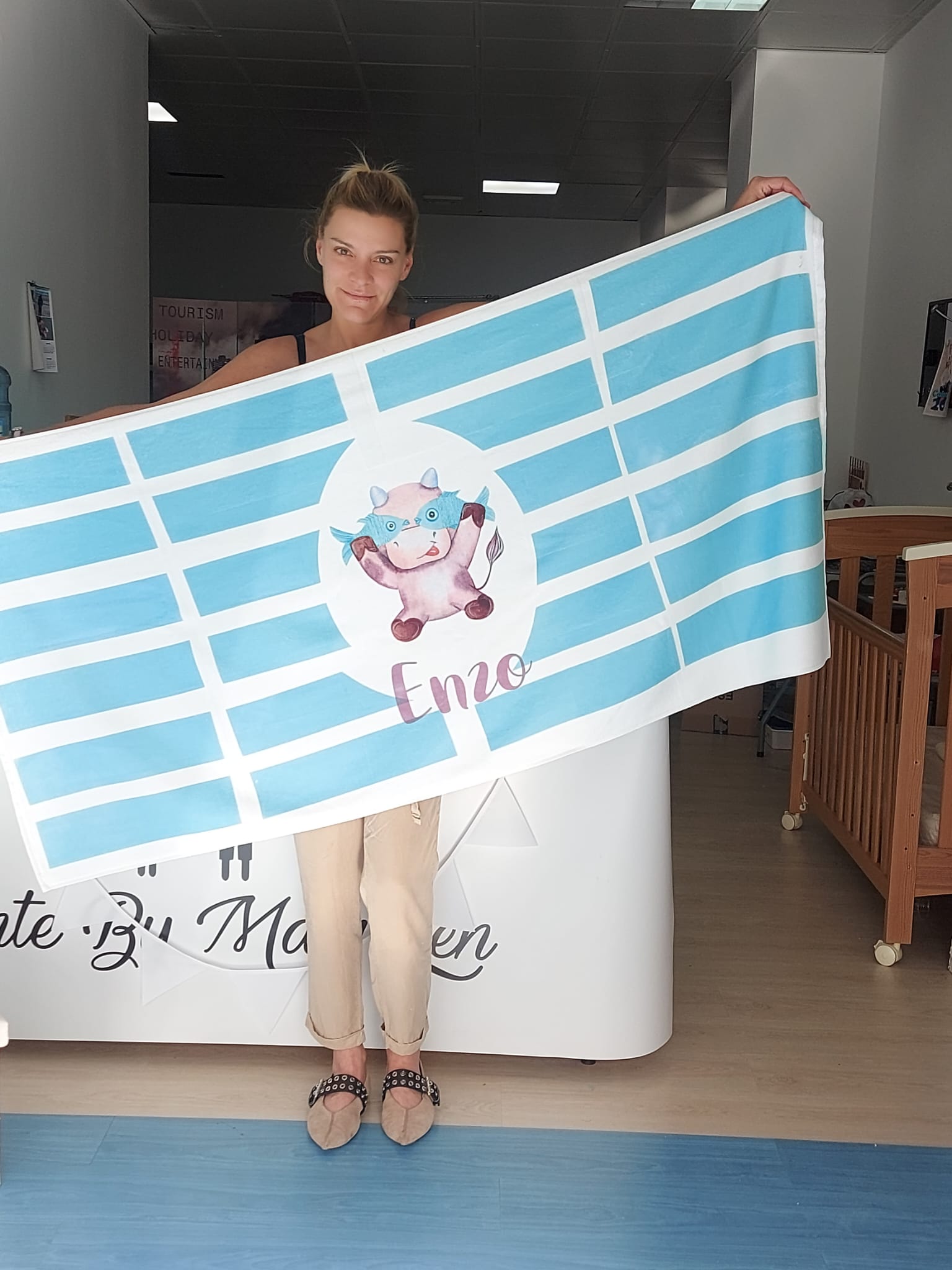 Toalla infantil azul nombre