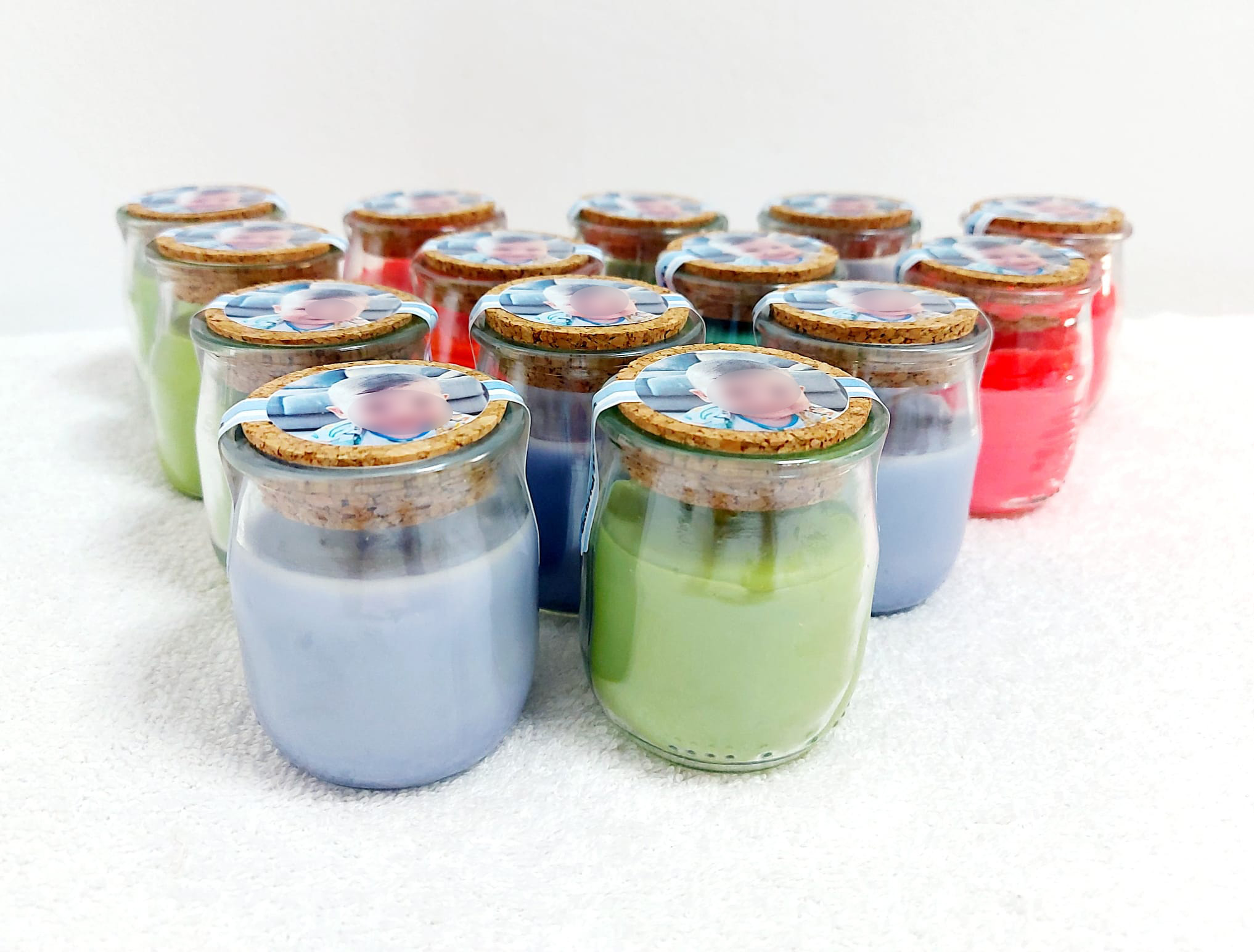 Vela en tarro de cristal forma Yogurt. De 125 cl. colores surtidos,